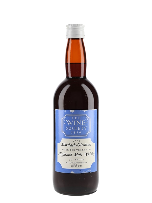 A bottle of Mortlach 10 Year Old Single Malt Scotch Whisky bottled by The Wine Society. We estimate this was bottled in the 1970s.