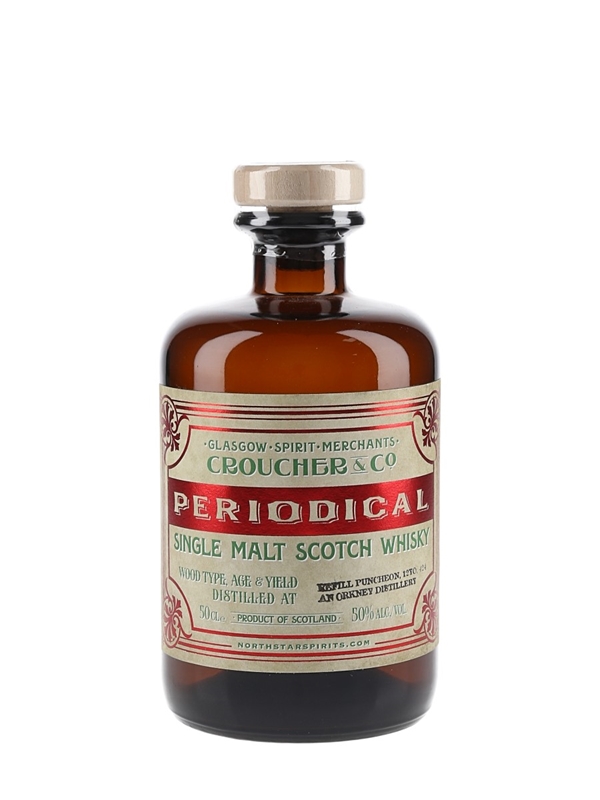 A bottle of Croucher & Co 'Periodical' 12 Year Old Single Malt Scotch Whisky. This was distilled at an undisclosed Orkney distillery, aged in a refill puncheon and bottled by North Star Spirits.