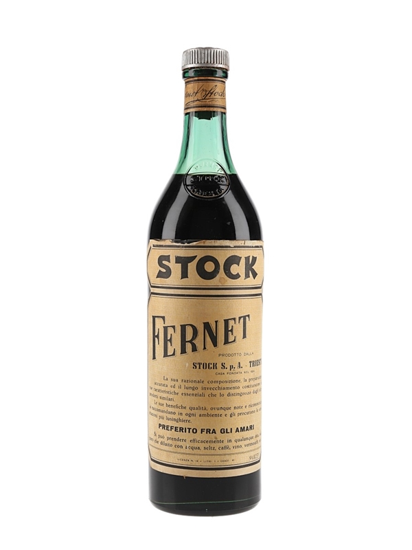 A litre bottle of Stock Fernet, a bitter herbal liqueur produce of Italy. We estimate this was bottled in the 1950s.