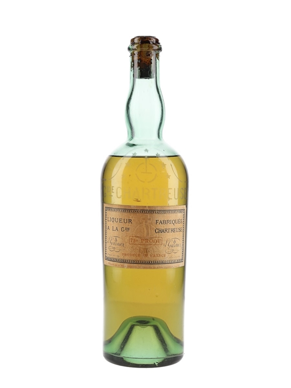 A bottle of Chartreuse Yellow Liqueur produced in France. We estimate this was bottled between 1941 and 1951.