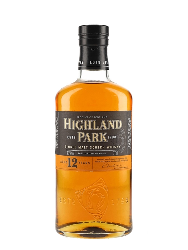 A bottle of Highland Park 12 Year Old Single Malt Scotch Whisky.
