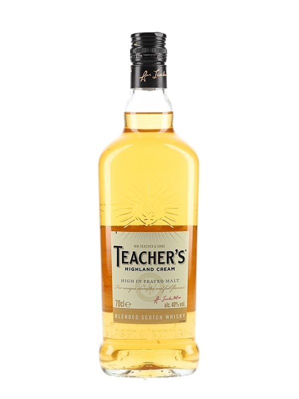 A bottle of Teacher's Highland Cream Blended Scotch Whisky.