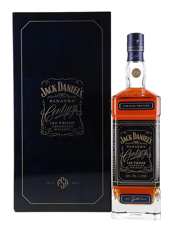 A limited edition litre bottle of Jack Daniel's celebrating the life of Frank Sinatra, who would have turned 100 in 2015. Bottled at 100 proof from 100 casks specially selected by master distiller Jeff Arnett.