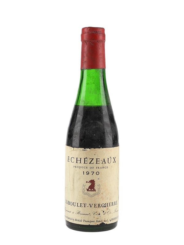 A half bottle of 1970 Echézeaux from Jaboulet-Vercherre. This was bottled in the UK by the British Transport Hotels Ltd.