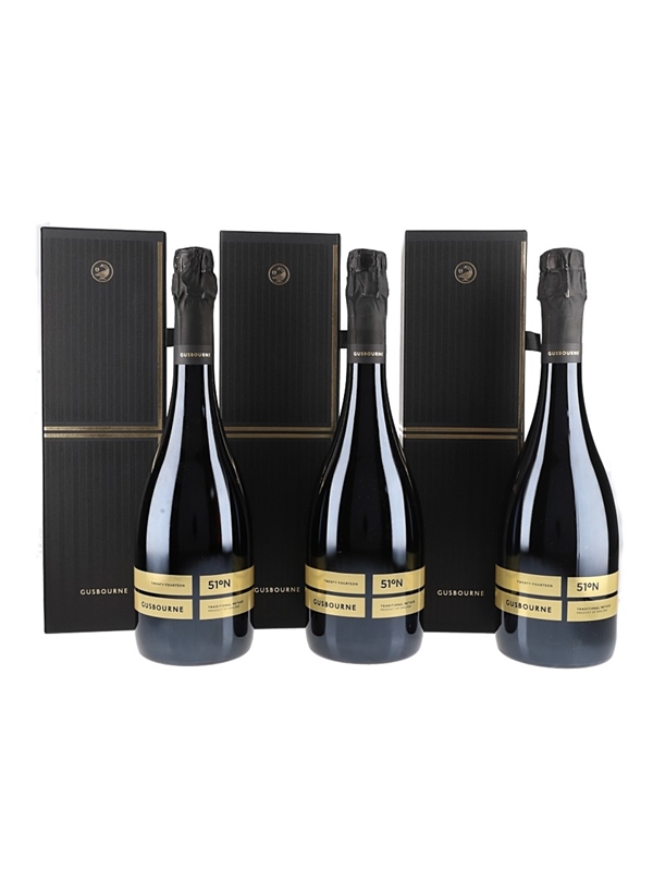 This lot contains three 75cl bottles of Gusbourne Fifty One Degrees North 2014. The first vintage of the prestige cuvée, taken from the Gusbourne library cellar.