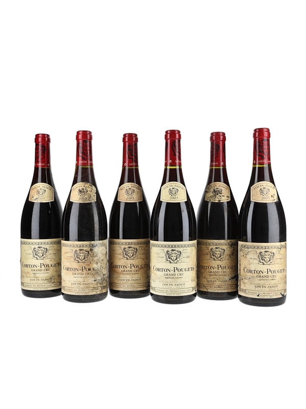 This lot contains six bottle of Corton-Pougets Grand Cru 2003 from Louis Jadot in the Original Wooden Box.