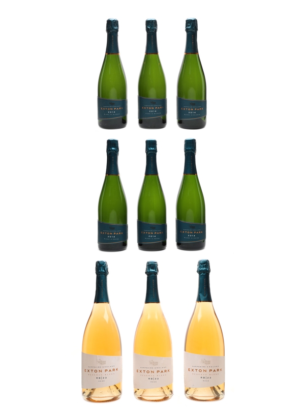 Exton Park English Sparkling Wines - Winemaker's Collection 2014 Blanc De Noirs, 2014 Blanc De Blancs & Reserve Blend Rose 9 x 75cl & 150cl / 11.5%