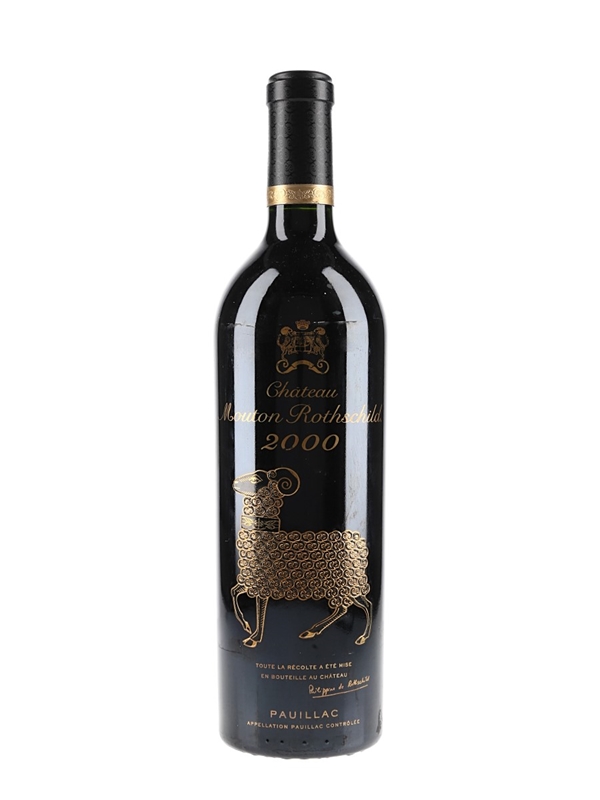 A bottle of 2000 Château Mouton Rothschild from Bordeaux's Pauillac appellation.