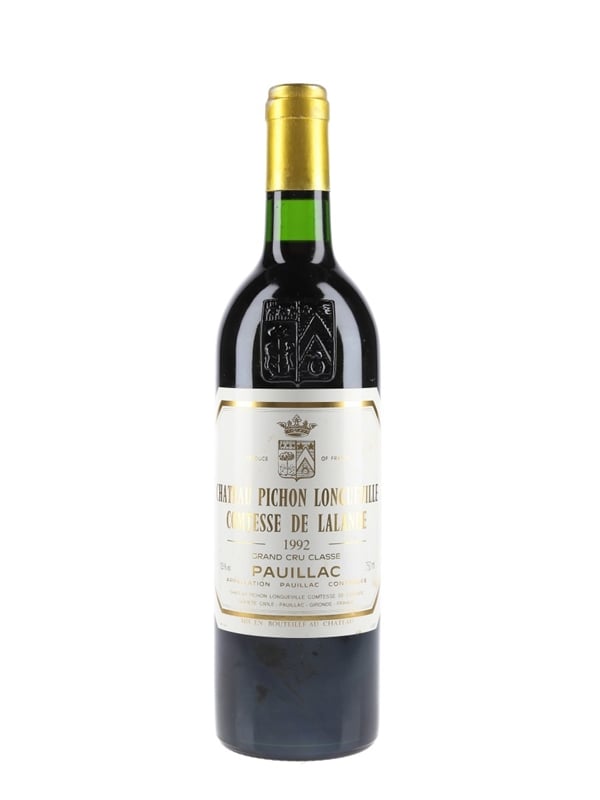 This lot contains a bottle of 1992 Château Pichon Longueville Comtesse de Lalande, a 'Super Second' growth from Bordeaux's Pauillac appellation.