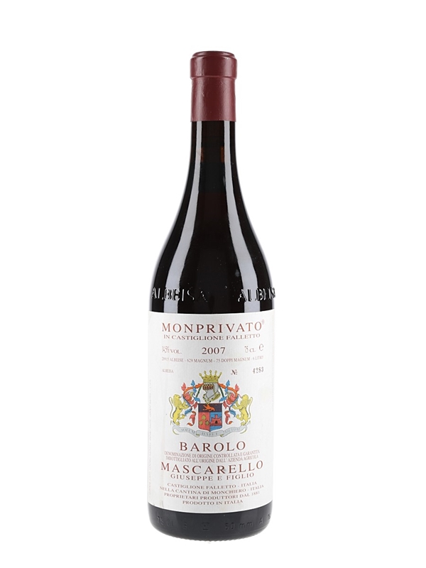 A bottle of 2007 Mascarello Monprivato Barolo from Castiglione Falletto, the sole producer of the Monprivato Cru which has been bottled separately since 1970.
