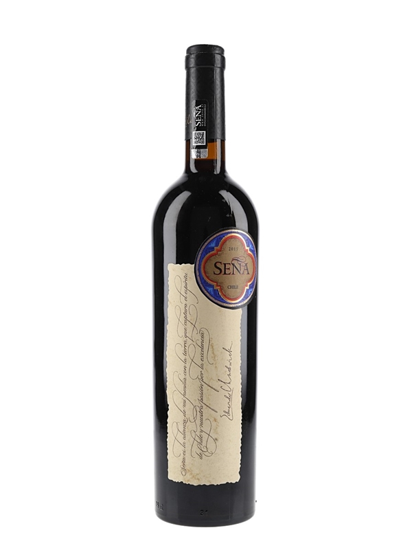 A bottle of 2015 Seña from Vinedo Chadwick from the Aconcagua Valley, Chile. This is a Bordeaux blend created by Eduardo Chadwick and the late Robert Mondavi.