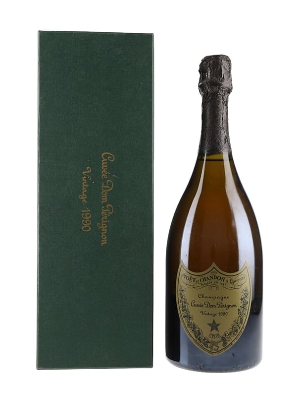 A bottle of 1990 Dom Pérignon vintage Champagne from Möet & Chandon. This was the first vintage produced by Cellar Master Richard Geoffroy, who worked for Moet & Chandon for 28 years in the role until 2019.
