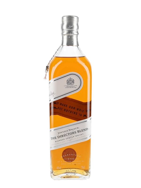 A bottle of Johnnie Walker The Directors Blend Blended Scotch Whisky produced by John Walker & Sons and bottled at 46%. This edition was released in 2013 and given exclusively to friends and colleagues of Johnnie Walker.