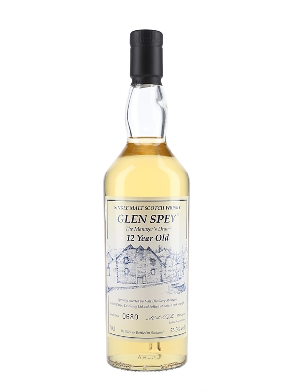 A bottle of Glen Spey 12 Year Old The Manager's Dram Single Malt Scotch Whisky.