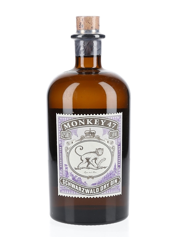 A 50cl bottle of Monkey 47 Dry Gin from Germany's Black Forest. A total of 47 regional botanicals, including Brassica Juncea (brown mustard), are used in the production of this unfiltered gin, bottled at 47% ABV in August 2021.