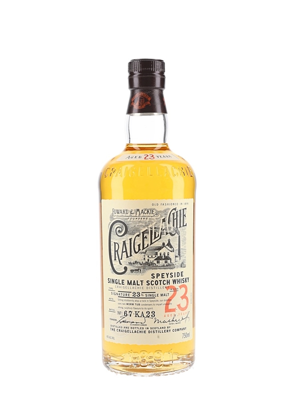 A bottle of Craigellachie 23 Year Old Speyside Single Malt Scotch Whisky.