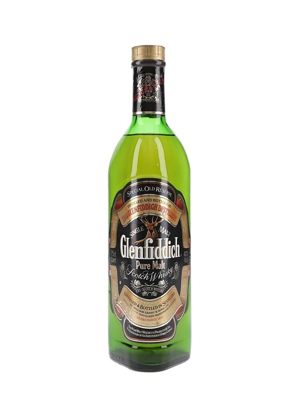 A bottle of Glenfiddich Special Old Reserve Pure Malt Scotch Whisky produced by William Grant & Sons Ltd. We estimate this was bottled in the 1980s.