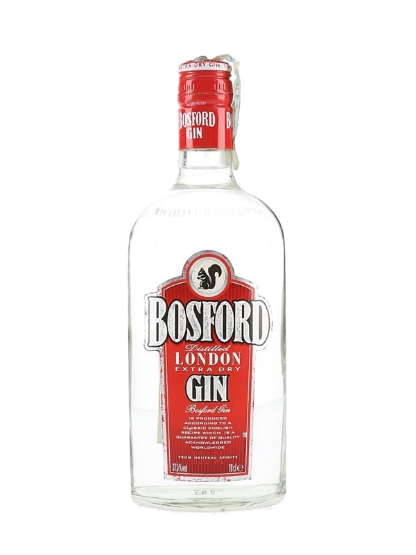 A bottle of Bosford Extra Dry Gin produced by special permission in Pessione, Italy, by Martini & Rossi according to the formula of Mr. D. Collins and Mr. K. V. Bryant Of London. We estimate this was bottled in the 1990s.