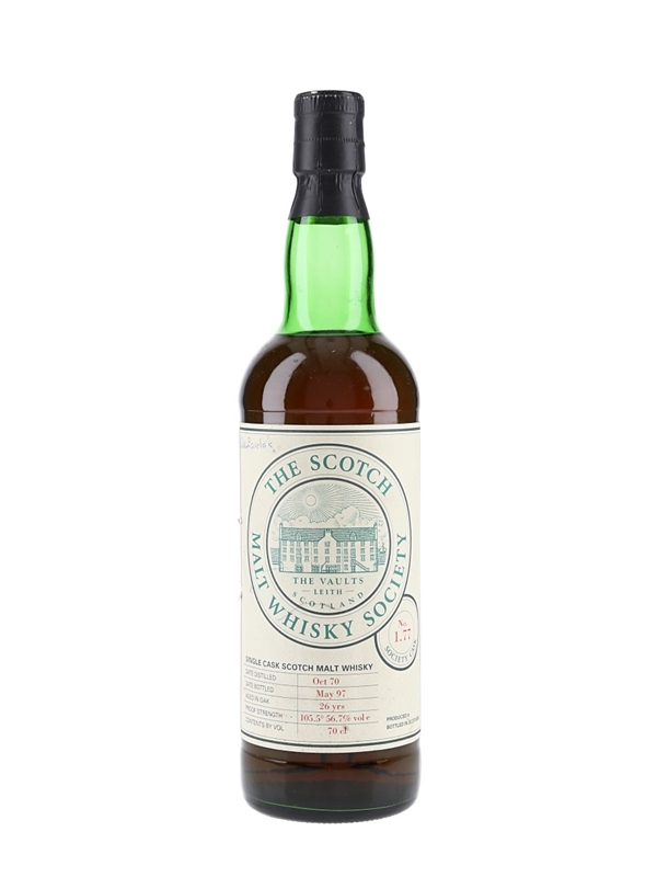 A bottle of Glenfarclas 26 Year Old Single Cask Single Malt Scotch Whisky from the Scotch Malt Whisky Society. This was distilled in October 1970 bottled at 56.7% ABV in May 1997.