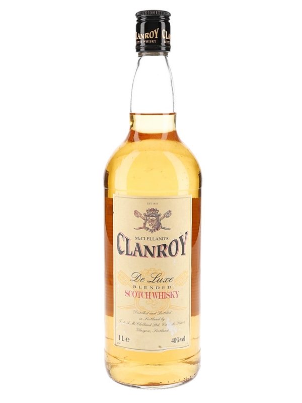 A litre bottle of McClelland's Clanroy De Luxe Blended Scotch Whisky. We estimate this was bottled in the 1990s.