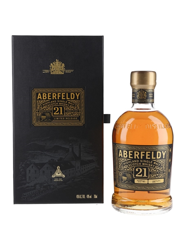 A bottle of Aberfeldy 21 Year Old Highland Single Malt scotch Whisky.