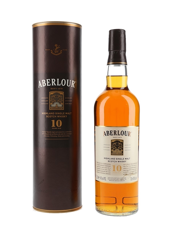A bottle of Aberlour 10 Year Old Highland Single Malt Scotch Whisky.