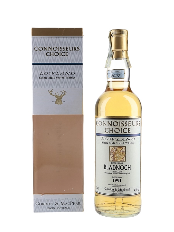 A bottle of Bladnoch, this was distilled in September 1991 and bottled in March 2007 by Gordon & MacPhail as part of the Connoisseurs Choice range.