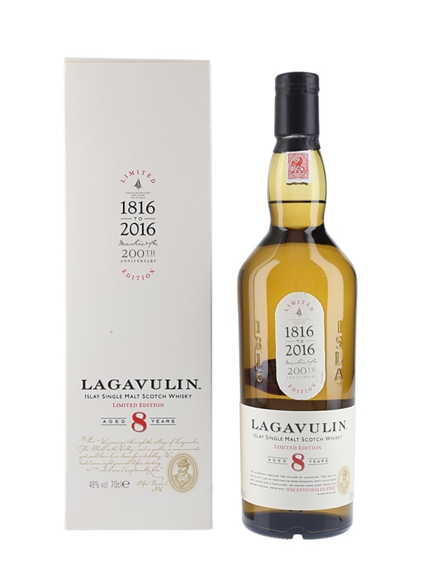 A bottle of Lagavulin 8 Year Old Limited Edition Islay Single Malt Scotch Whisky. This was released to commemorate the 200th anniversary of the founding of Lagavulin distillery by John Johnston in 1816.
