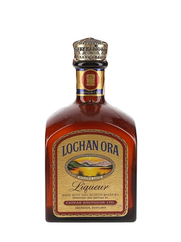 A bottle of Lochan Ora liqueur, produced by Chivas Brothers Ltd. and made with Chivas Regal Scotch whisky and flavoured with honey and a secret recipe of herbs and spices. We estimate this was bottled in the 1960s to 1970s.