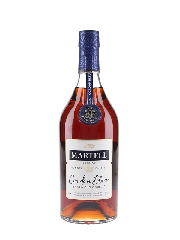 A bottle of Martell Cordon Bleu Extra Old Cognac. The bottling code indicates this was bottled in 2022.