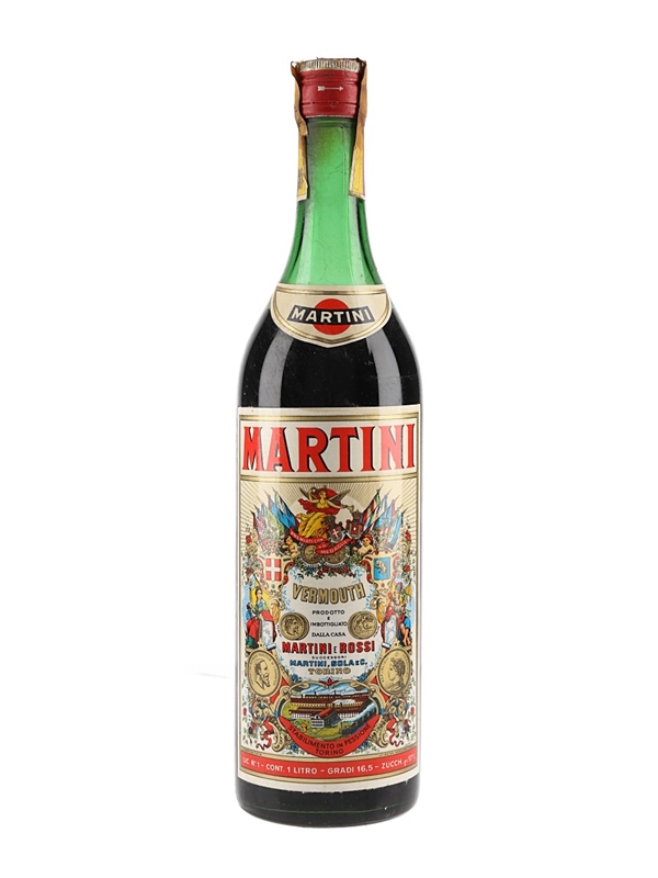 A litre bottle of Martini Rosso Vermouth produced in Italy. We estimate this was bottled in the 1970s.