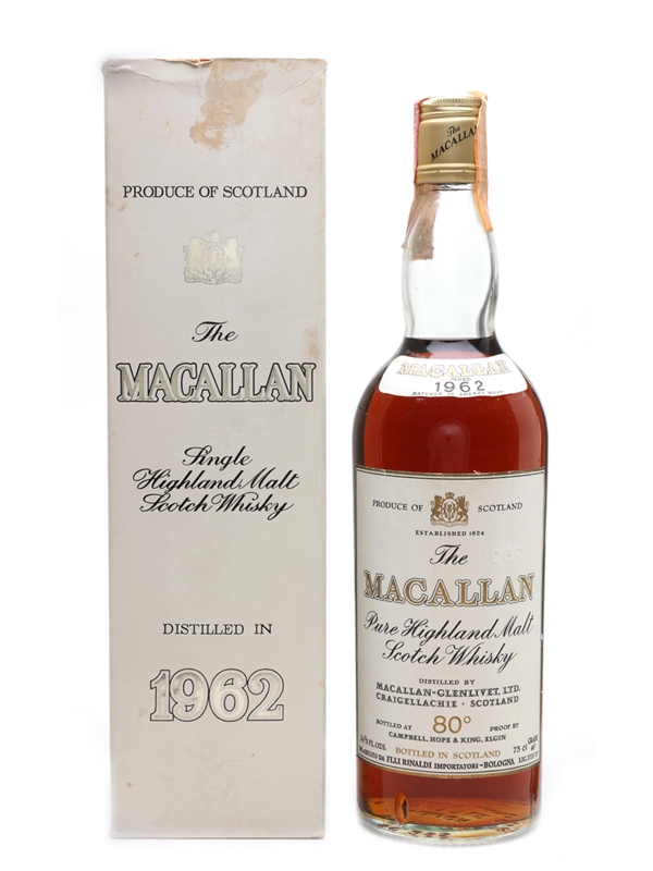 A bottle of The Macallan 1962, bottled by Campbell, Hope & King for Italian importer Rinaldi. We estimate this was bottled in the 1970s.
