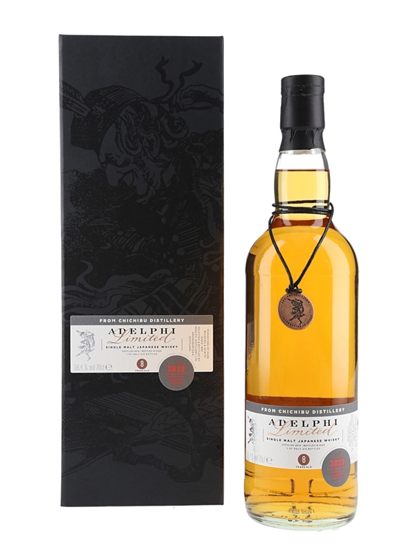 A bottle of Chichibu 8 Year Old Japanese Whisky. This was distilled in 2014, matured in a single cask and bottled by Adelphi in 2024.