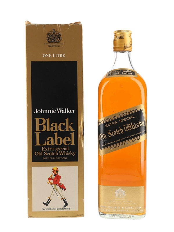 A litre bottle of Johnnie Walker Black Label Extra Special Old Scotch Whisky. We estimate this was bottled in the 1970s.