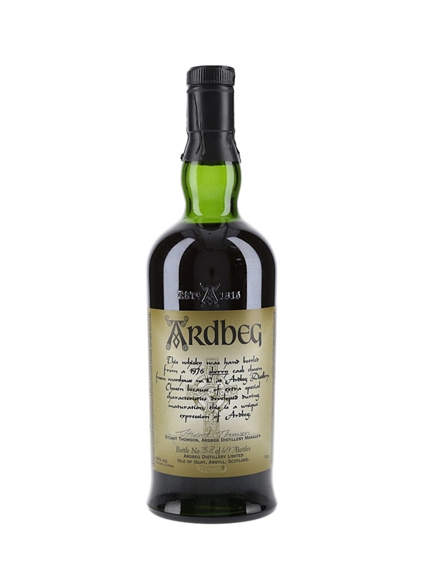 A bottle of 1976 Ardbeg Manager's Choice. This was bottled from a sherry butt chosen by distillery manager, Stuart Thomson, in 1999.