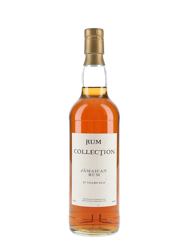 A bottle of 27 Year Old Jamaican Rum, bottled in Scotland by Speciality Drinks.