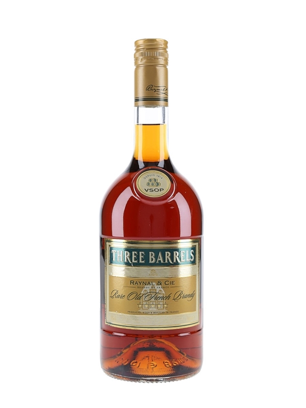 A litre bottle of Raynal Three Barrels VSOP 5 Star Rare Old French Brandy.