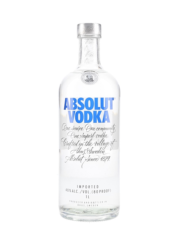 A litre bottle of Absolut Vodka produced in Sweden.