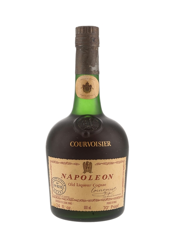 A bottle of Courvoisier Napoléon Old Liqueur Cognac. This is bottle number OB 6235.