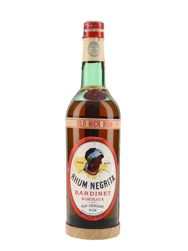 A bottle of Bardinet Negrita Old Genuine Nick Rum, a Caribbean blend produced by Bardinet in Barcelona, Spain. We estimate this was bottled in the 1960s.