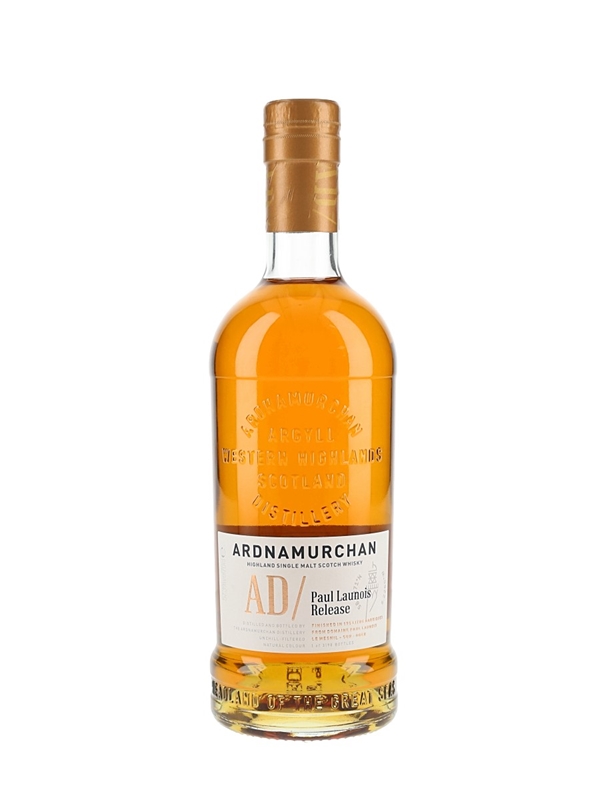 A bottle of Ardnamurchan AD Paul Launois Release Highland Single Malt Scotch Whisky. A limited release of only 3198 bottles finished in 195 litre wine Barriques from Domaine Paul Launois Le Mesnil-Sur-Oger, Champagne, bottled in 2024.