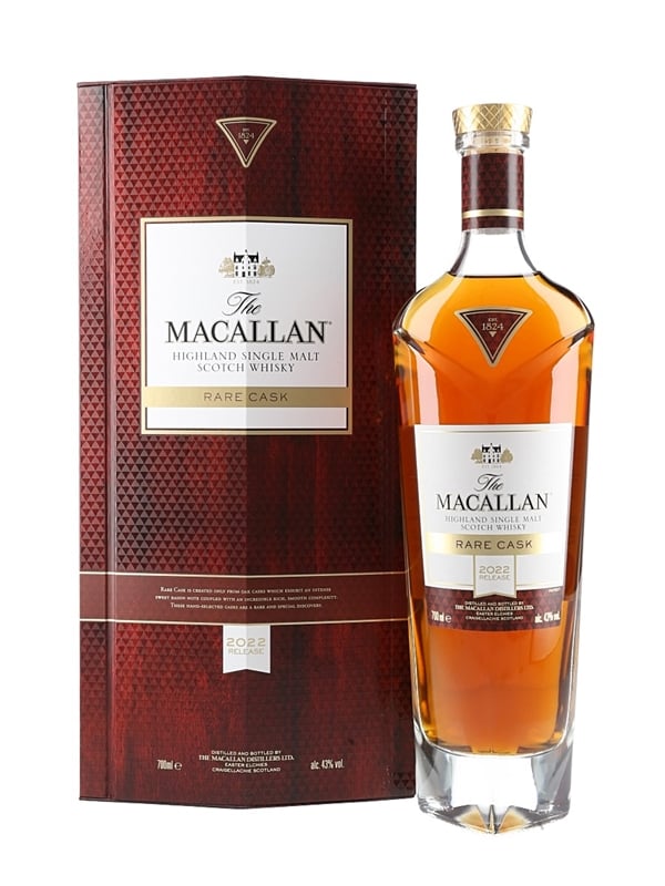 A bottle of The Macallan Rare Cask Highland Single Malt Scotch Whisky, released in 2022 as a new addition to the company’s 1824 Series of core expressions.