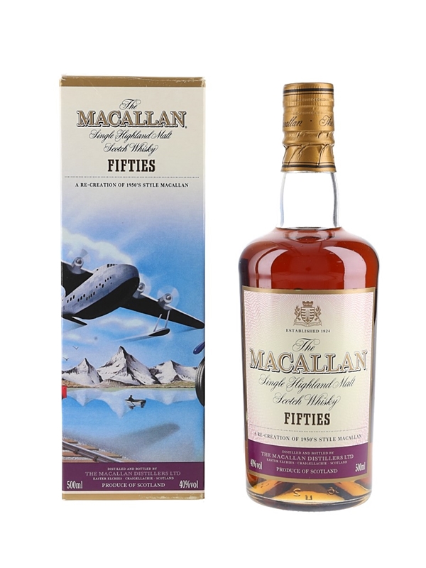 A 50cl bottle of The Macallan Fifties Single Highland Malt Scotch Whisky bottled for the Travel Series.