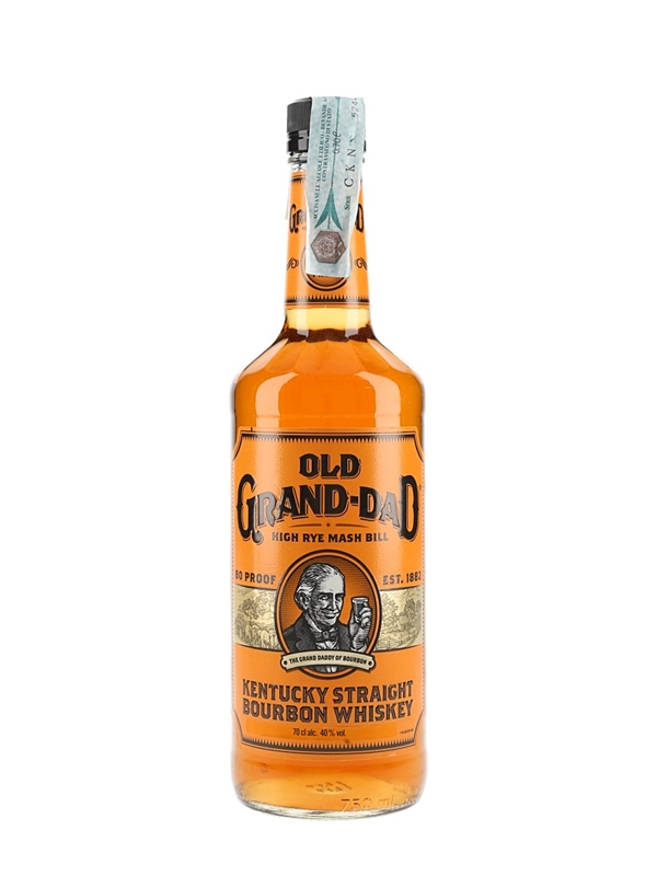 A bottle of Old Grand-Dad 80 Proof Kentucky straight bourbon whiskey.