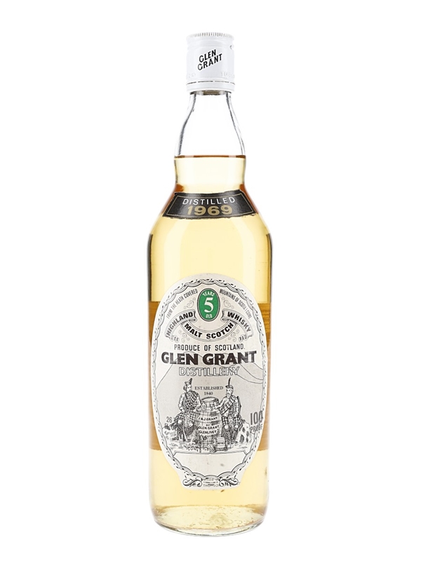 A bottle of Glen Grant 5 Year Old 100° Proof Highland Malt Scotch Whisky. This was distilled in 1969 and bottled by Gordon & MacPhail.