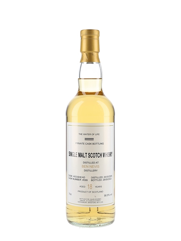 A private cask bottling of Ben Nevis 18 Year Old Highland Single Malt Scotch Whisky. This was distilled on 26 May 2005, matured in a single cask and bottled at 56.5% ABV on 26 May 2023.