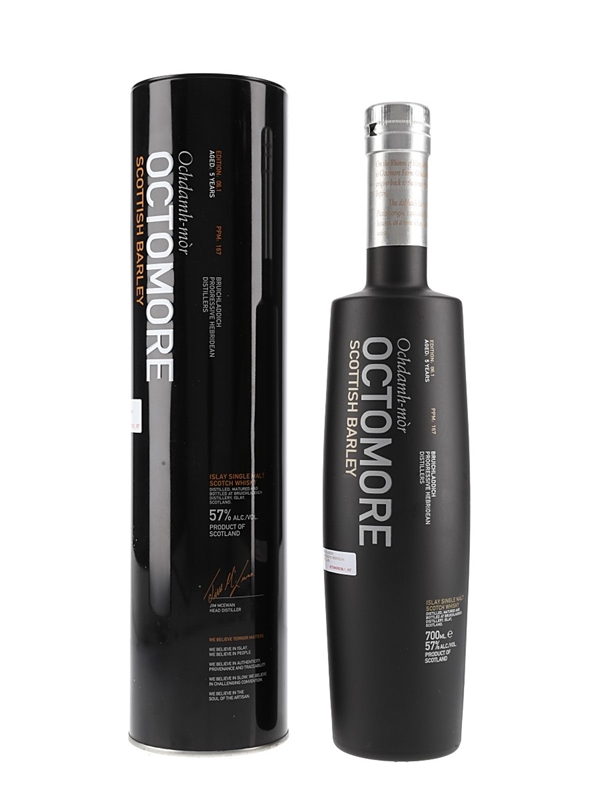 The sixth release of Octomore 5 Year Old Islay Single Malt Scotch Whisky from Bruichladdich distillery. This was distilled from Scottish barley peated to 167ppm.
