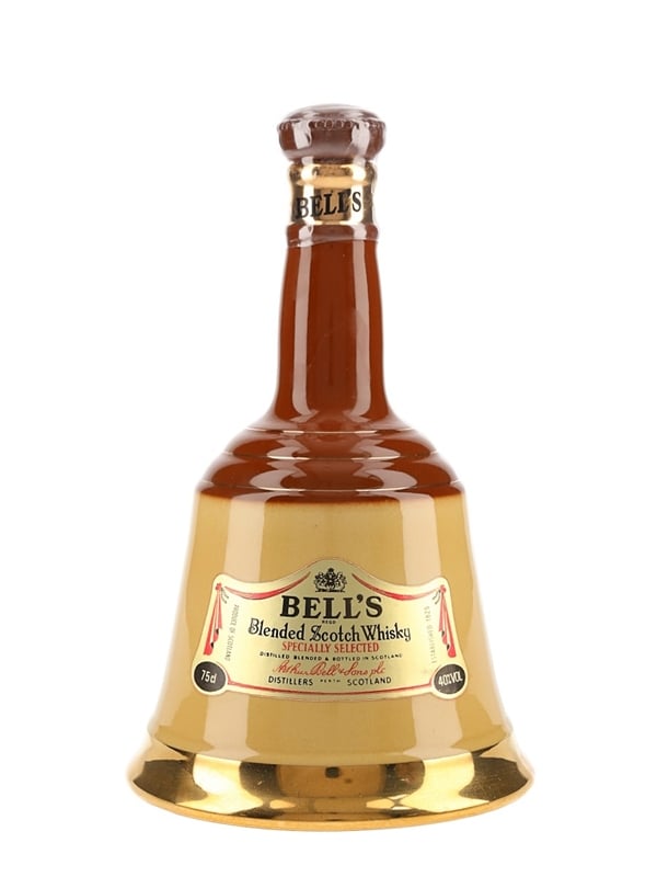 A bottle of Bell's Specially Selected Old Scotch Whisky produced by Arthur Bells & Sons Ltd. and presented in a brown ceramic Wade decanter. This preceded the Christmas series and is of a slightly narrower shape than later editions. We estimate this was bottled in the 1980s.