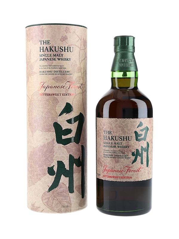 A limited edition bottle of The Hakushu Japanese Forest Bittersweet Single Malt Japanese Whisky, aged in Spanish oak casks before being bottle at 43% ABV.