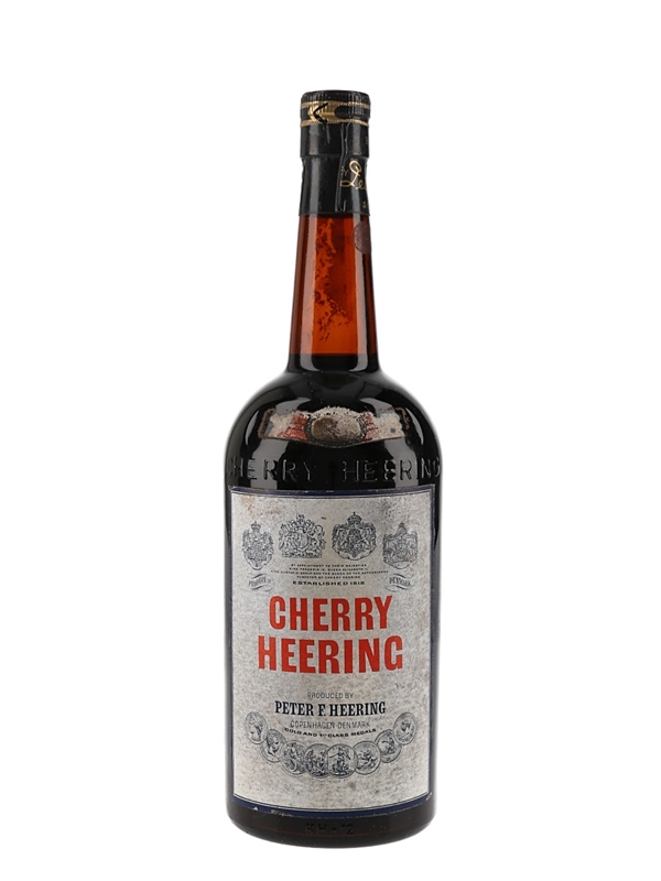 A bottle of Cherry Heering liqueur produced in Copenhagen, Denmark. We estimate this was bottled in the 1970s.